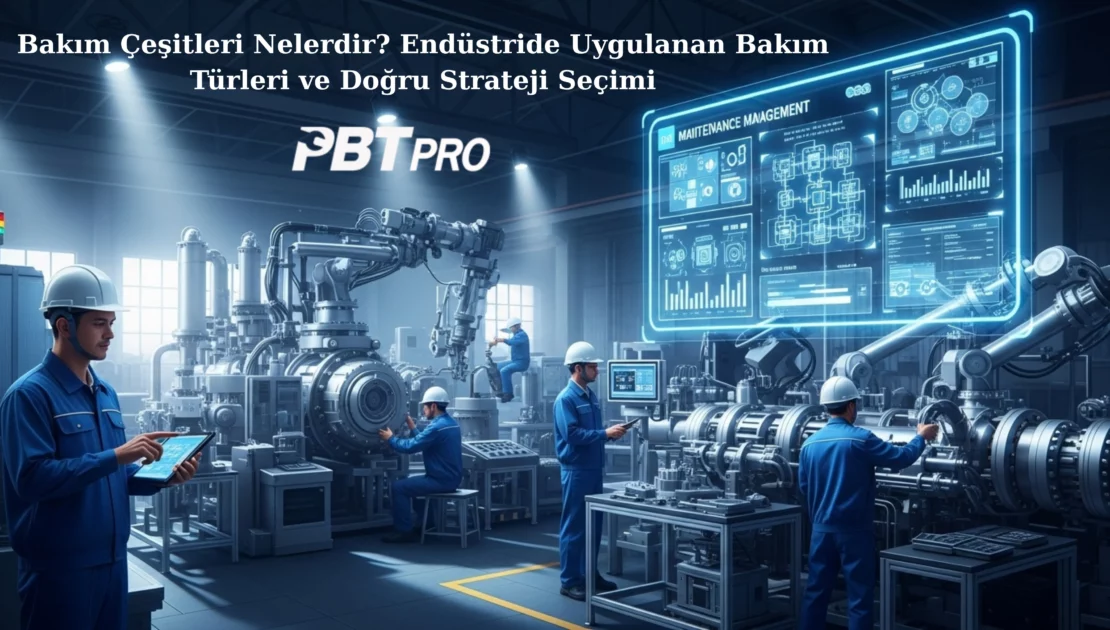 Bu yazıda endüstride yaygın olarak kullanılan reaktif bakım, periyodik (önleyici) bakım, kestirimci bakım, proaktif bakım ve otonom bakım türlerini detaylı şekilde ele alacak, her bir bakım türünün PBT PRO Bakım Yönetimi Yazılımı ile nasıl etkin şekilde yönetilebileceğini inceleyeceğiz.